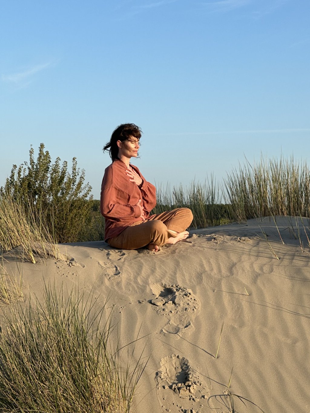 Een rustgevende plek voor lichaamswerk, verstilling en verdieping. Een gedeelde plek dichtbij bos en zee, geïnitieerd door Danielle en Marije, waar verschillende werkwijze samenkomen.